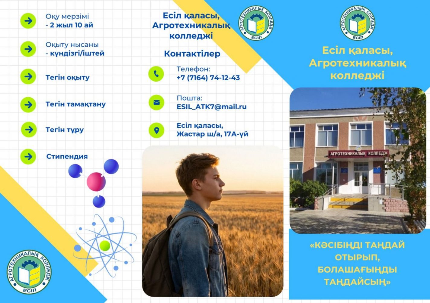Сегодня, 22.04.2026 года в рамках проекта «Сельская школа» на базе Агротехнического колледжа г.Есиль было организовано по инициативе куратора подшефных школ ОШ им.С.Серикова г.Есиль Вашурко Снежанны Николаевны мероприятие в формате круглого стола «Вектор будущего: школа и колледж – территория партнерства». Участники круглого стола были ознакомлены с историей колледжа, которая началась еще с 1958 года, как училище механизации сельского хозяйства для подготовки рабочих кадров для образованного целинного района. В настоящее время это современный и модернизированный ГККП «Агротехнический колледж г.Есиль при управлении образования Акмолинской области», в котором ведется подготовка по актуальным рабочим специальностям: механизация сельского хозяйства, организация питания, сварочное дело, ремонт и эксплуатация автомобильного транспорта, учет и аудит. География набора студентов определяется в основном контингентом из Есильского и Жаркаинского района. Современная учебно-материальная база, лаборатории, мастерские позволяют обеспечивать качественную профессиональную подготовку студентов