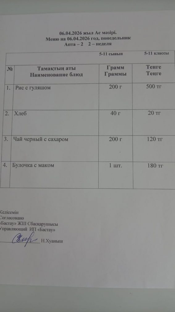 ас мәзірі 06.04.2026 ж