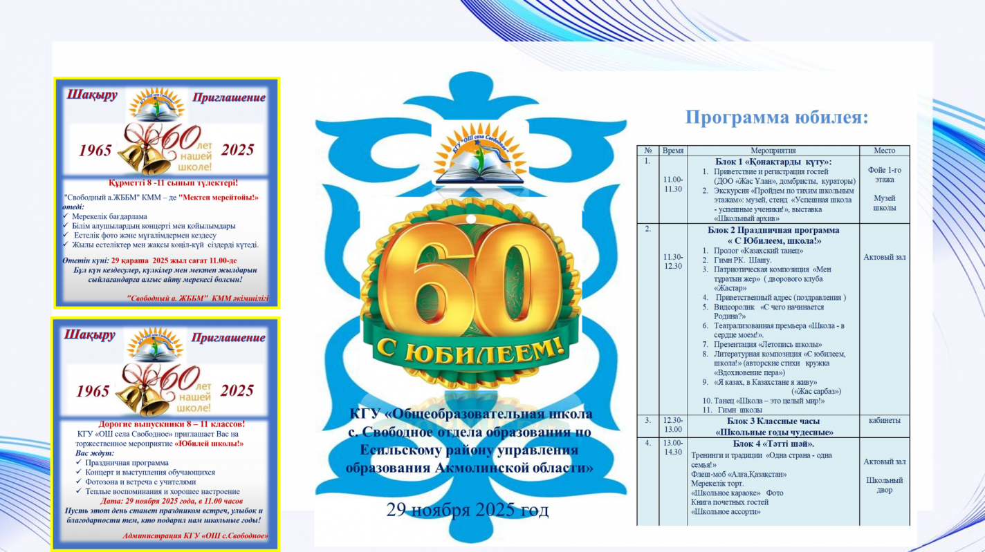 Поздравляем Свободненскую школу с 60-летием со дня основания и желаем дальнейшего успешного развития, укрепления образовательных традиций и новых достижений!