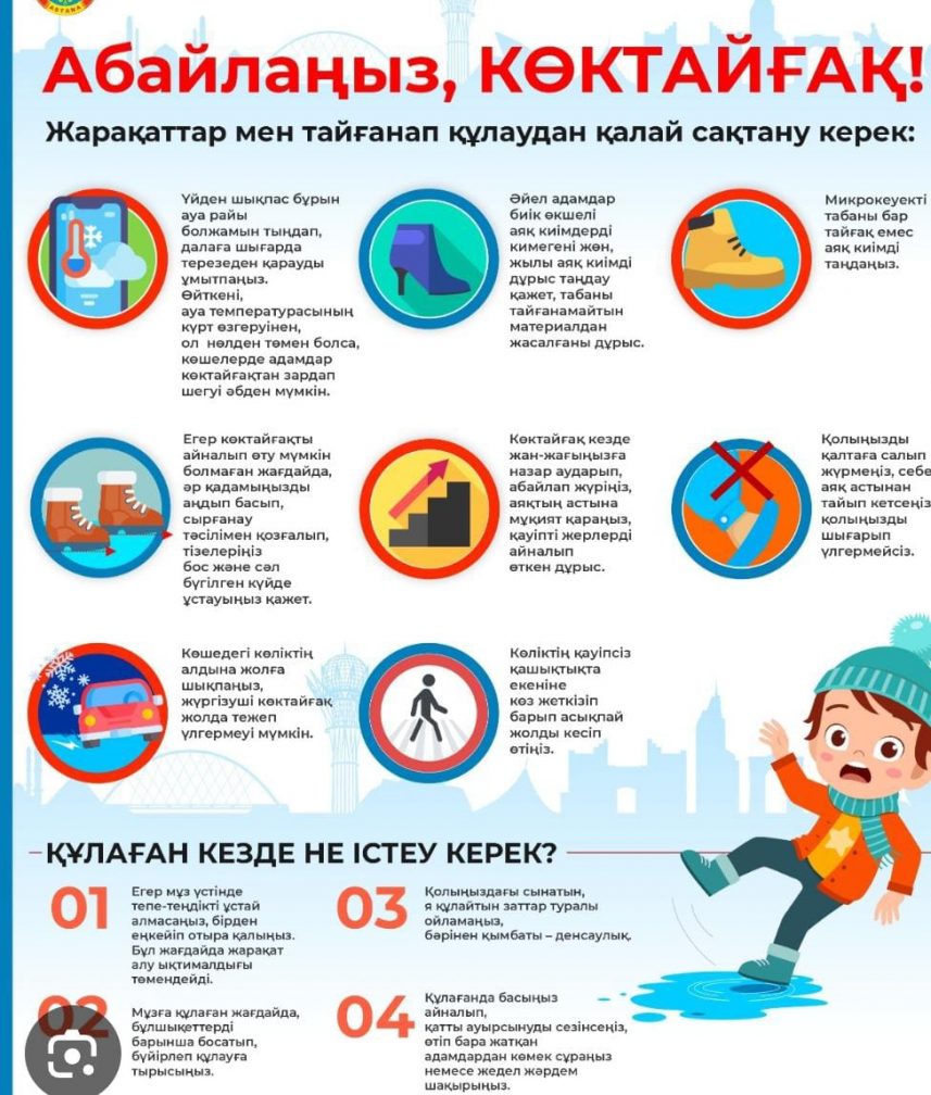 "Қыста қауіпсіз мінез-құлық" білім алушыларға арналған жадынамалар
