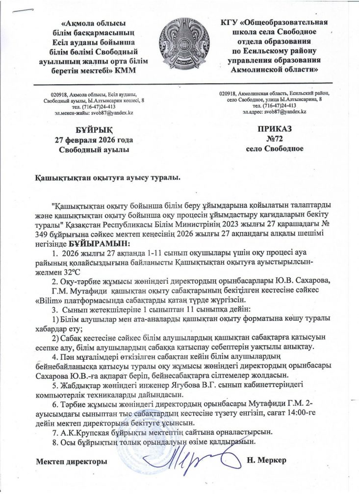 Қашықтықтан оқытуға ауысу туралы