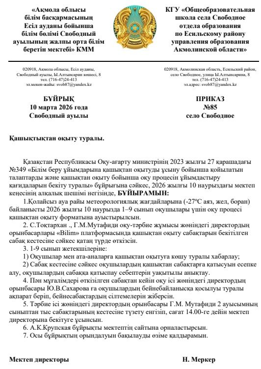 Қашықтықтан оқытуға ауысу туралы 10.03.2026