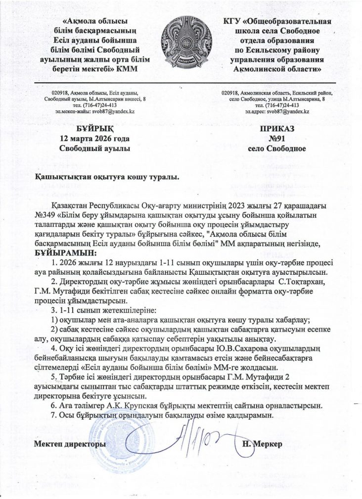 Қашықтықтан оқытуға ауысу туралы 12.03.2026