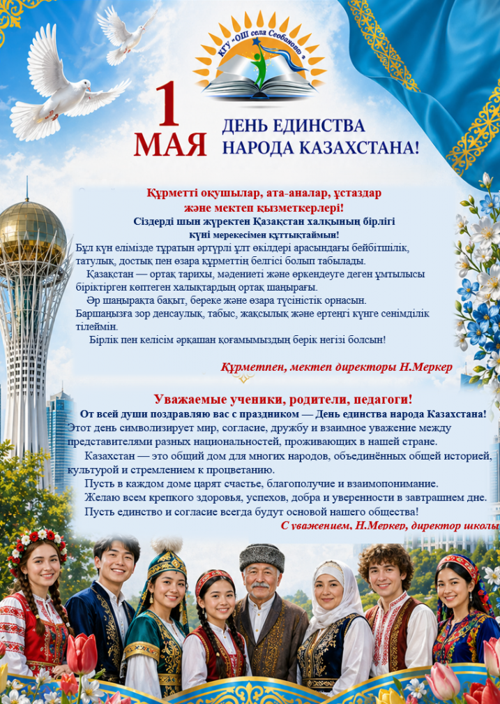 Мектеп директорының Қазақстан халқының бірлігі күнімен құттықтауы